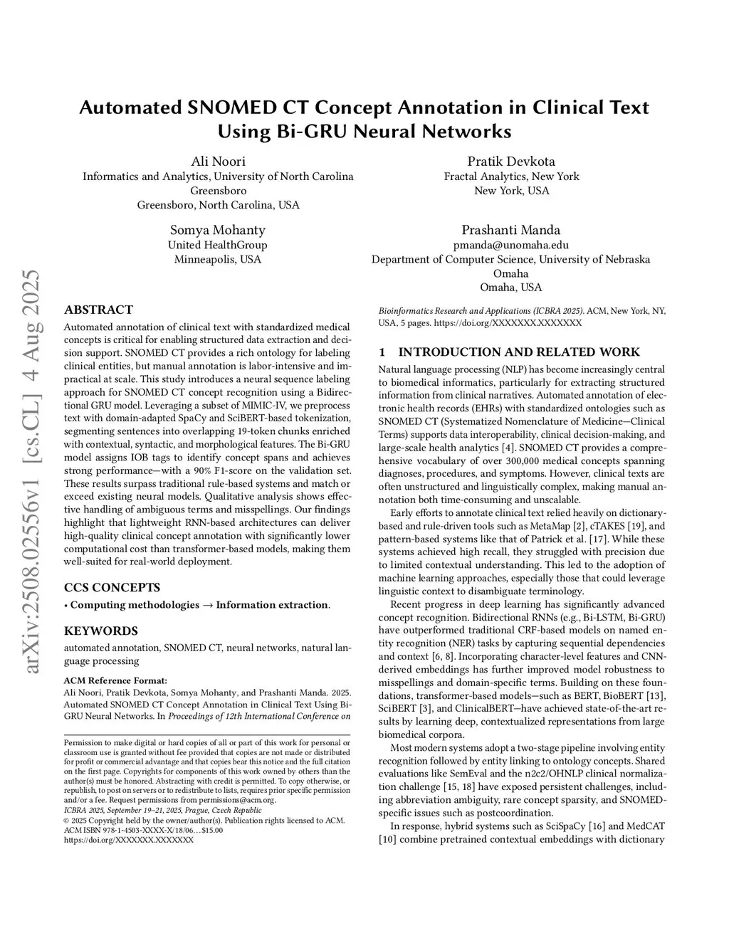 Automated SNOMED CT Concept Annotation in Clinical Text Using Bi-GRU Neural Networks