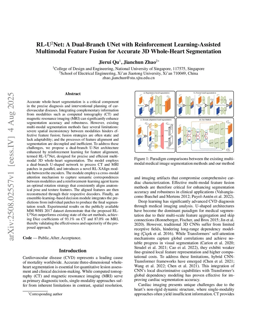 RL-UNet: A Dual-Branch UNet with Reinforcement Learning-Assisted Multimodal Feature Fusion for Accurate 3D Whole-Heart Segmentation