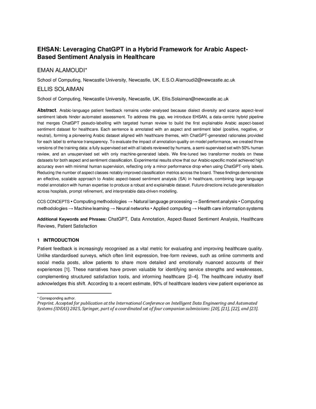 EHSAN: Leveraging ChatGPT in a Hybrid Framework for Arabic Aspect-Based Sentiment Analysis in Healthcare