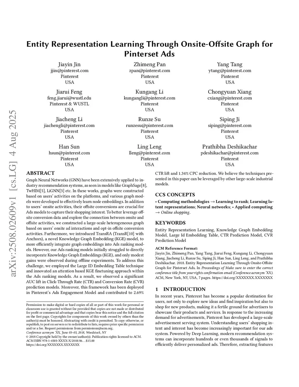 Entity Representation Learning Through Onsite-Offsite Graph for Pinterest Ads