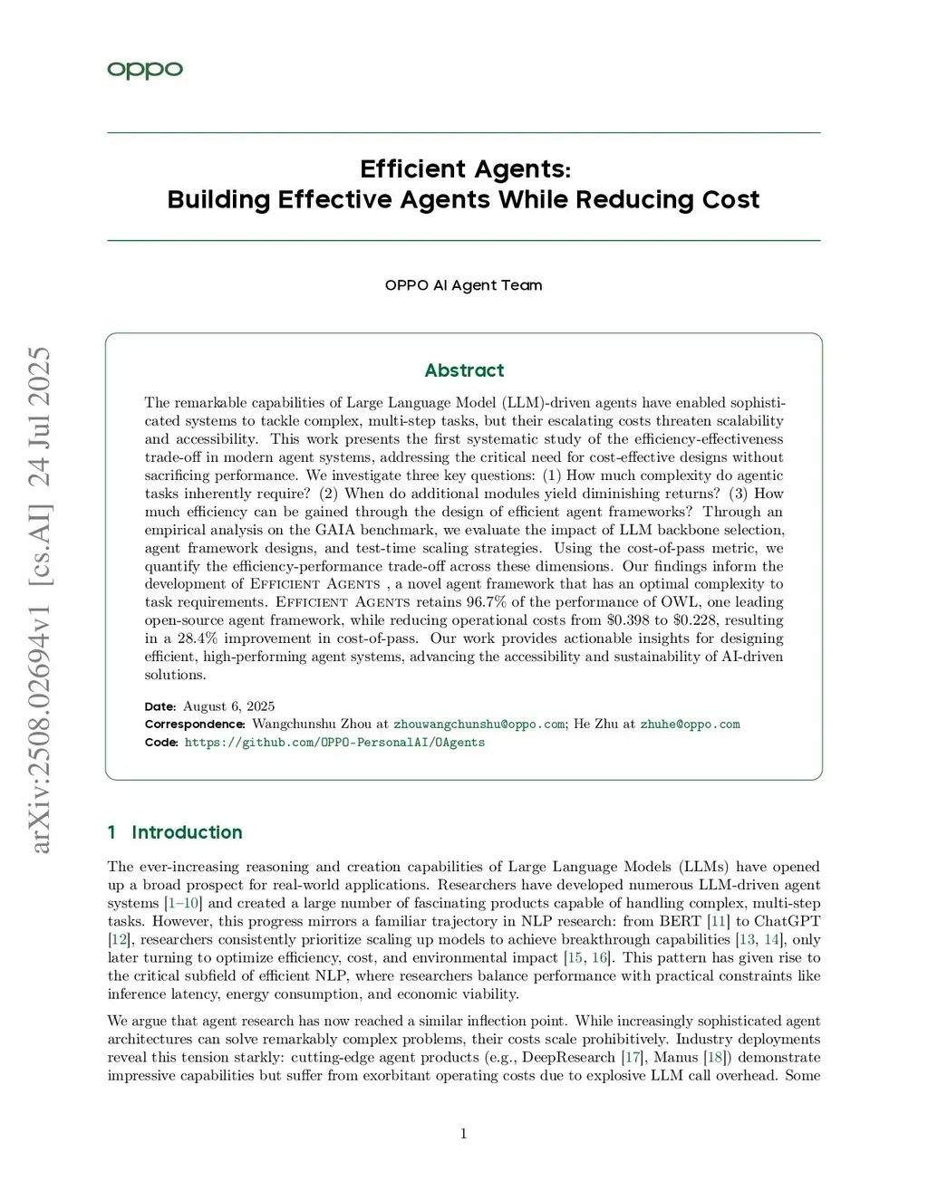 The remarkable capabilities of Large Language Model (LLM)-driven agents have enabled sophisticated systems to tackle complex, multi-step tasks, but their escalating costs threaten scalability and accessibility. This work presents the first systematic study of the efficiency-effectiveness trade-off in modern agent systems, addressing the critical need for cost-effective designs without sacrificing performance. We investigate three key questions: (1) How much complexity do agentic tasks inherently require? (2) When do additional modules yield diminishing returns? (3) How much efficiency can be gained through the design of efficient agent frameworks? Through an empirical analysis on the GAIA benchmark, we evaluate the impact of LLM backbone selection, agent framework designs, and test-time scaling strategies. Using the cost-of-pass metric, we quantify the efficiency-performance trade-off across these dimensions. Our findings inform the development of Efficient Agents , a novel agent framework that has an optimal complexity to task requirements. Efficient Agents retains 96.7% of the performance of OWL, one leading open-source agent framework, while reducing operational costs from $0.398 to $0.228, resulting in a 28.4% improvement in cost-of-pass. Our work provides actionable insights for designing efficient, high-performing agent systems, advancing the accessibility and sustainability of AI-driven solutions.