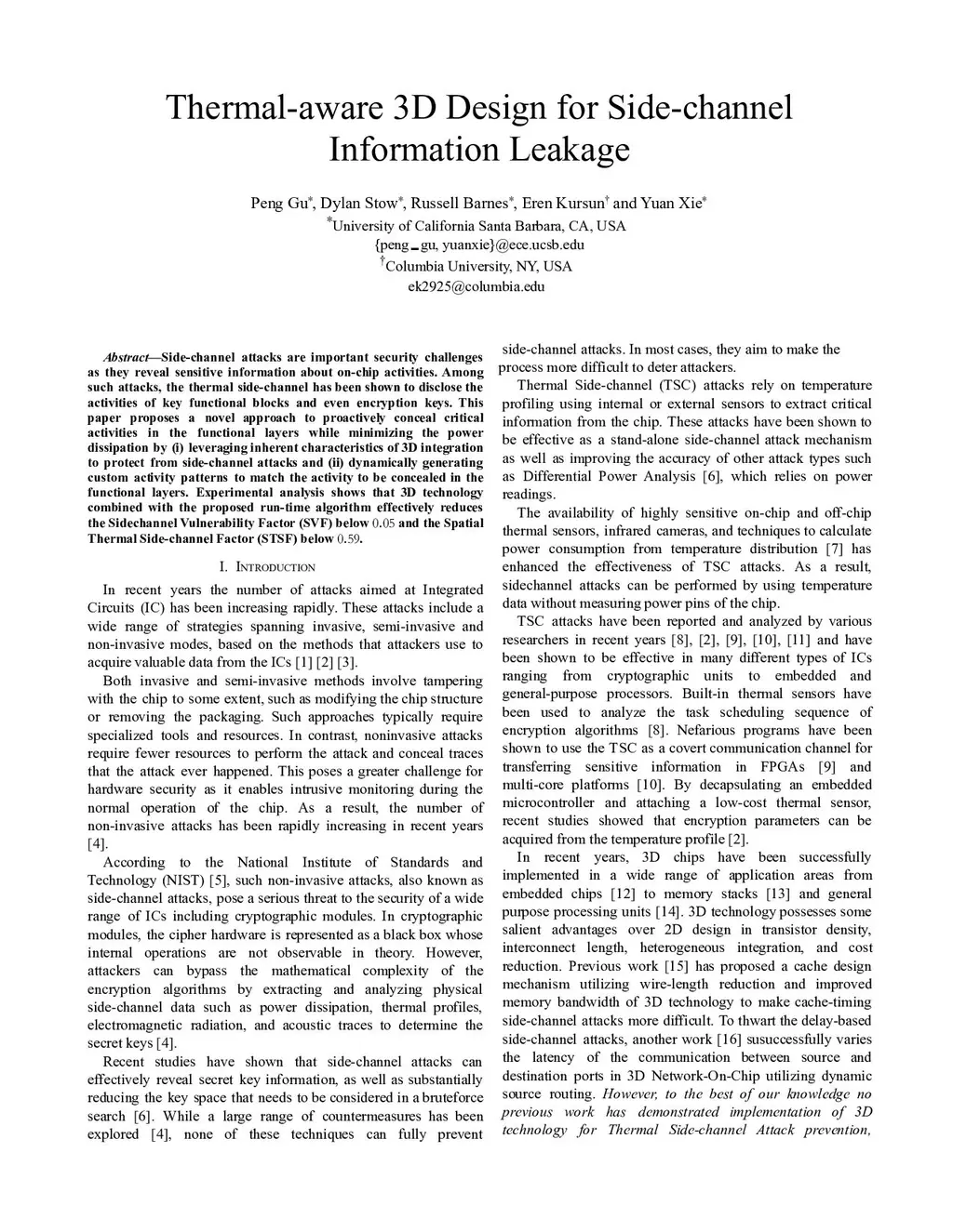 Thermal-Aware 3D Design for Side-Channel Information Leakage