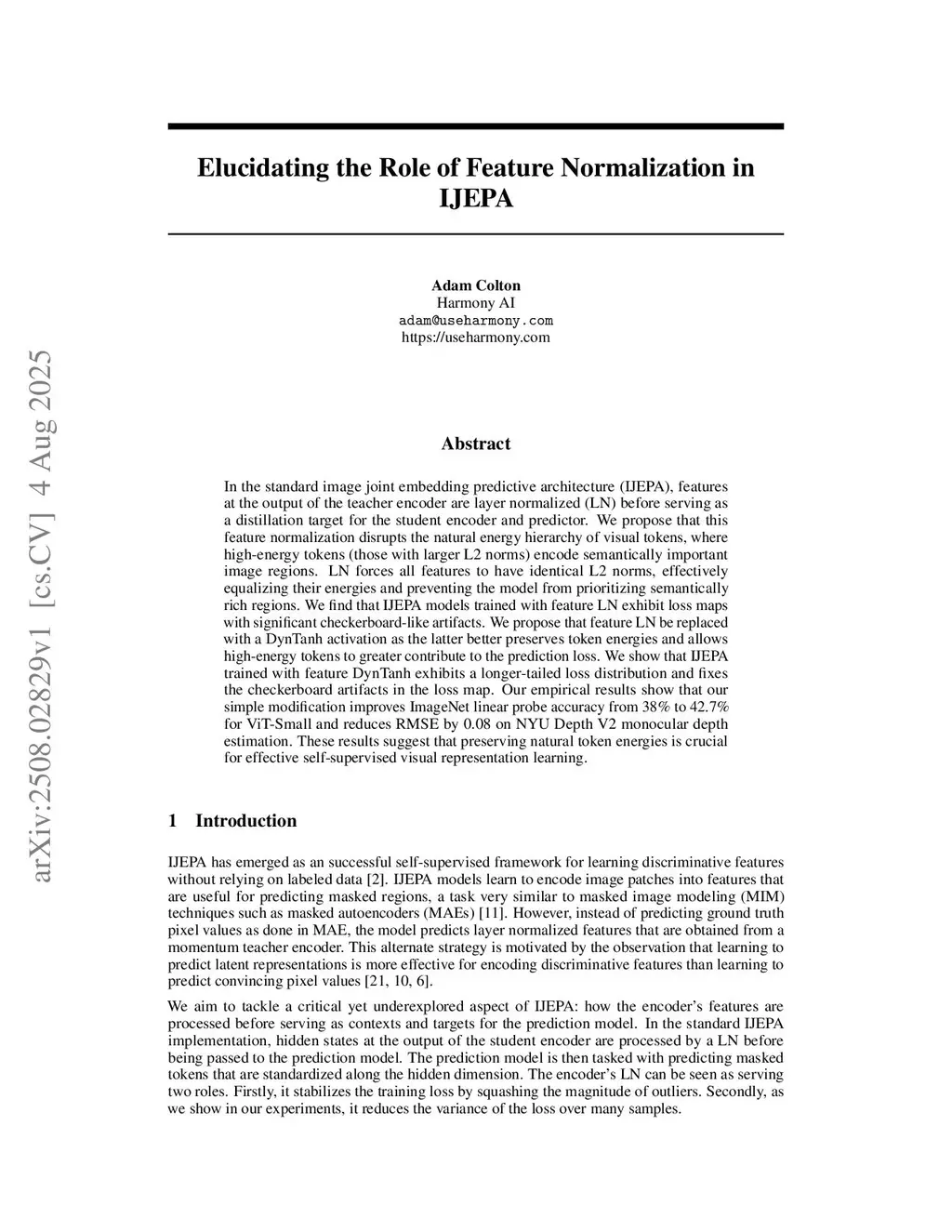 In the standard image joint embedding predictive architecture (IJEPA), features at the output of the teacher encoder are layer normalized (LN) before serving as a distillation target for the student encoder and predictor. We propose that this feature normalization disrupts the natural energy hierarchy of visual tokens, where high-energy tokens (those with larger L2 norms) encode semantically important image regions. LN forces all features to have identical L2 norms, effectively equalizing their energies and preventing the model from prioritizing semantically rich regions. We find that IJEPA models trained with feature LN exhibit loss maps with significant checkerboard-like artifacts. We propose that feature LN be replaced with a DynTanh activation as the latter better preserves token energies and allows high-energy tokens to greater contribute to the prediction loss. We show that IJEPA trained with feature DynTanh exhibits a longer-tailed loss distribution and fixes the checkerboard artifacts in the loss map. Our empirical results show that our simple modification improves ImageNet linear probe accuracy from 38% to 42.7% for ViT-Small and reduces RMSE by 0.08 on NYU Depth V2 monocular depth estimation. These results suggest that preserving natural token energies is crucial for effective self-supervised visual representation learning.
