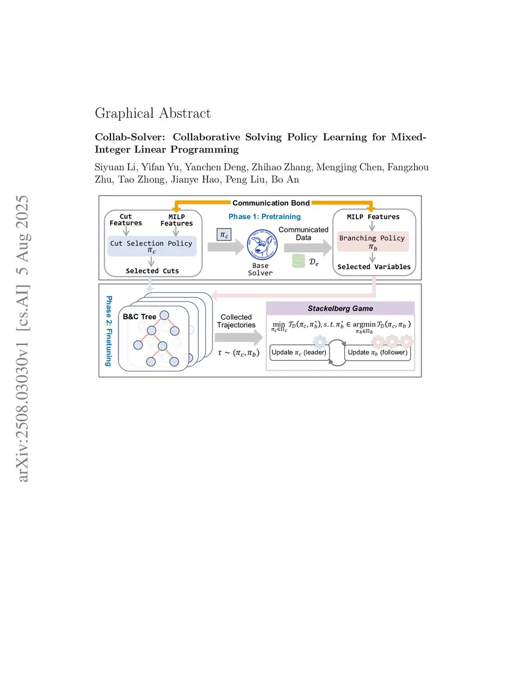Mixed-integer linear programming (MILP) has been a fundamental problem in combinatorial optimization. Conventional MILP solving mainly relies on carefully designed heuristics embedded in the branch-and-bound framework. Driven by the strong capabilities of neural networks, recent research is exploring the value of machine learning alongside conventional MILP solving. Although learning-based MILP methods have shown great promise, existing works typically learn policies for individual modules in MILP solvers in isolation, without considering their interdependence, which limits both solving efficiency and solution quality. To address this limitation, we propose Collab-Solver, a novel multi-agent-based policy learning framework for MILP that enables collaborative policy optimization for multiple modules. Specifically, we formulate the collaboration between cut selection and branching in MILP solving as a Stackelberg game. Under this formulation, we develop a two-phase learning paradigm to stabilize collaborative policy learning: the first phase performs data-communicated policy pretraining, and the second phase further orchestrates the policy learning for various modules. Extensive experiments on both synthetic and large-scale real-world MILP datasets demonstrate that the jointly learned policies significantly improve solving performance. Moreover, the policies learned by Collab-Solver have also demonstrated excellent generalization abilities across different instance sets.