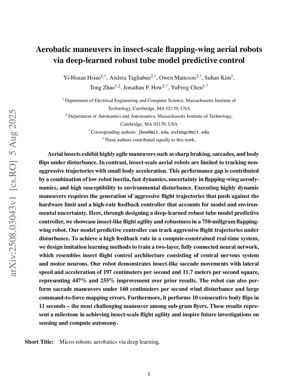 Aerobatic maneuvers in insect-scale flapping-wing aerial robots via deep-learned robust tube model predictive control