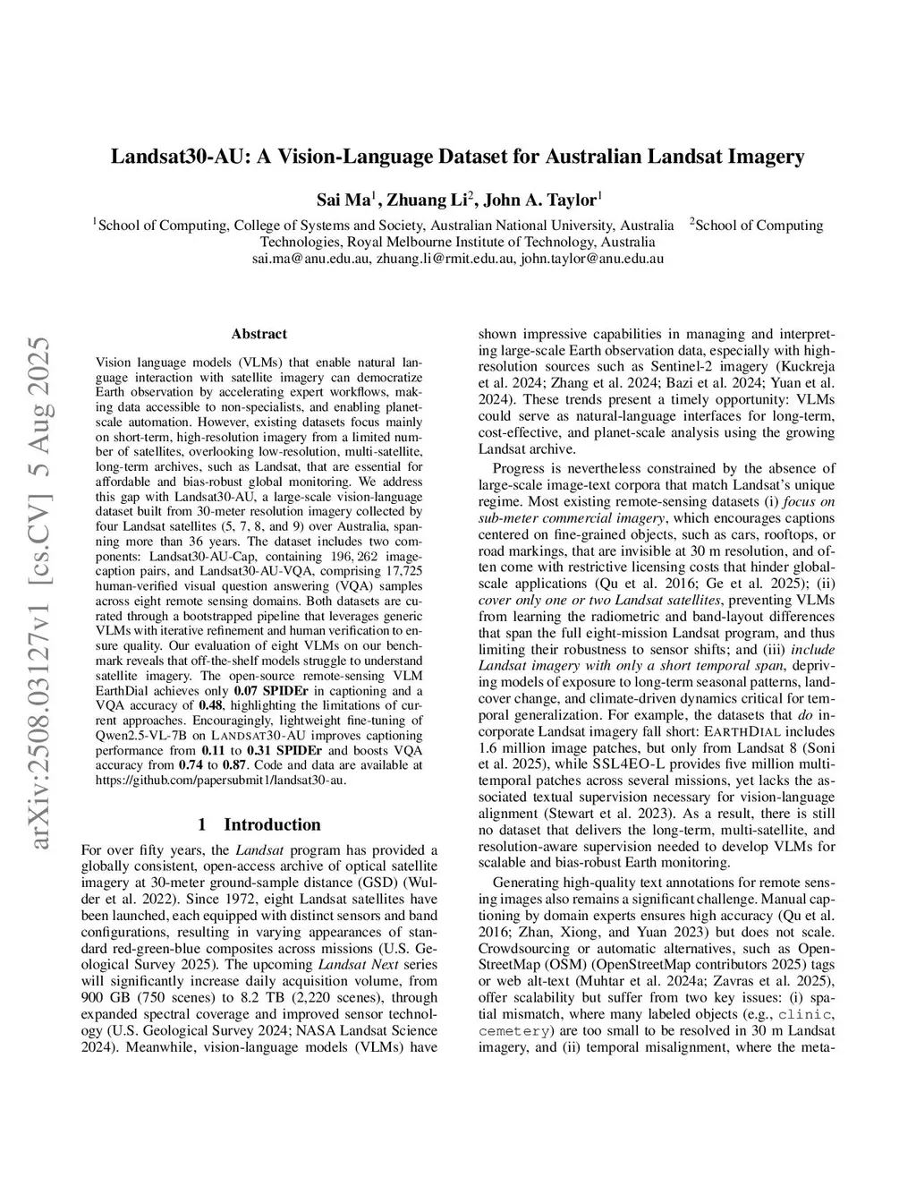 Landsat30-AU: A Vision-Language Dataset for Australian Landsat Imagery