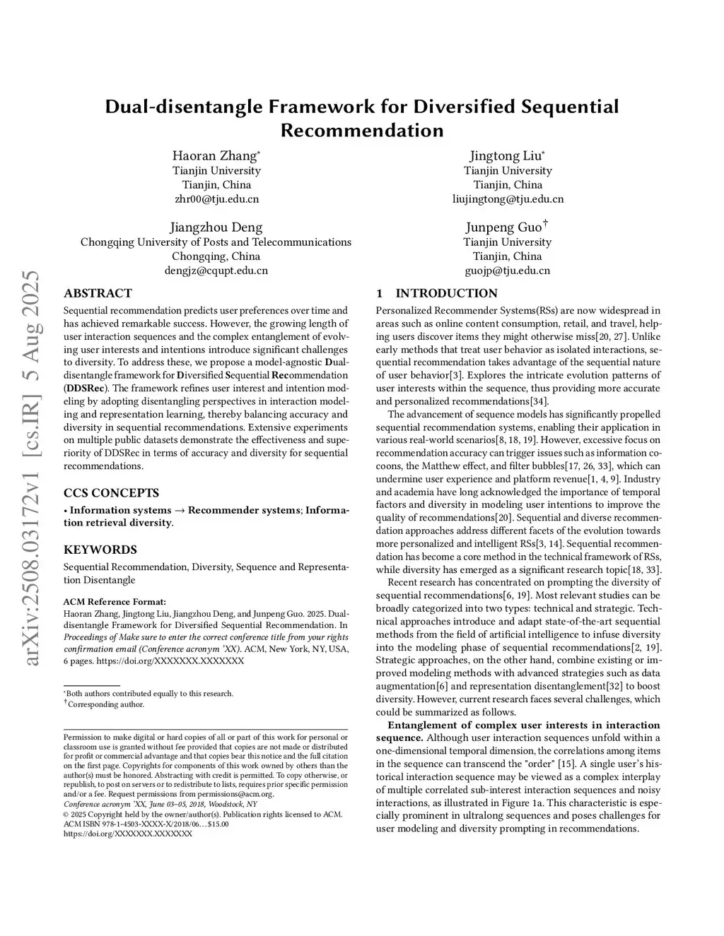 Sequential recommendation predicts user preferences over time and has achieved remarkable success. However, the growing length of user interaction sequences and the complex entanglement of evolving user interests and intentions introduce significant challenges to diversity. To address these, we propose a model-agnostic Dual-disentangle framework for Diversified Sequential Recommendation (DDSRec). The framework refines user interest and intention modeling by adopting disentangling perspectives in interaction modeling and representation learning, thereby balancing accuracy and diversity in sequential recommendations. Extensive experiments on multiple public datasets demonstrate the effectiveness and superiority of DDSRec in terms of accuracy and diversity for sequential recommendations.