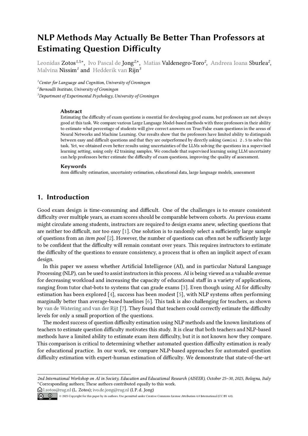 NLP Methods May Actually Be Better Than Professors at Estimating Question Difficulty
