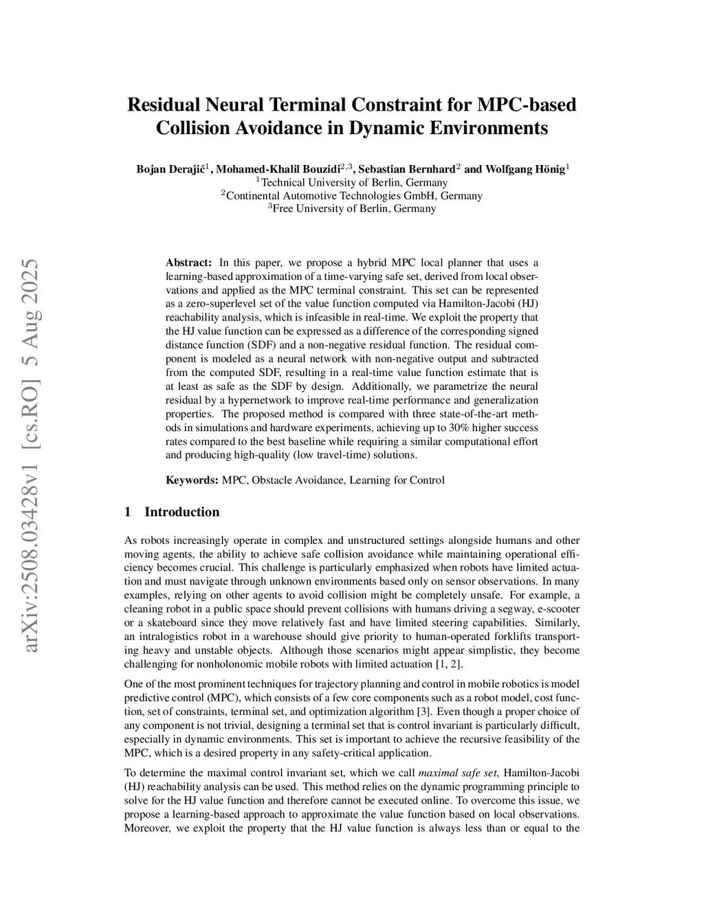 Residual Neural Terminal Constraint for MPC-based Collision Avoidance in Dynamic Environments
