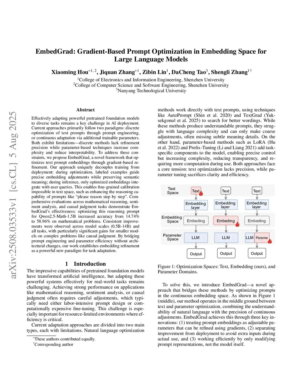 EmbedGrad: Gradient-Based Prompt Optimization in Embedding Space for Large Language Models