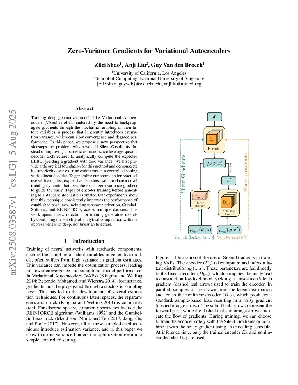 Training deep generative models like Variational Autoencoders (VAEs) requires propagating gradients through stochastic latent variables, which introduces estimation variance that can slow convergence and degrade performance. In this paper, we explore an orthogonal direction, which we call Silent Gradients. Instead of designing improved stochastic estimators, we show that by restricting the decoder architecture in specific ways, the expected ELBO can be computed analytically. This yields gradients with zero estimation variance as we can directly compute the evidence lower-bound without resorting to Monte Carlo samples of the latent variables. We first provide a theoretical analysis in a controlled setting with a linear decoder and demonstrate improved optimization compared to standard estimators. To extend this idea to expressive nonlinear decoders, we introduce a training paradigm that uses the analytic gradient to guide early encoder learning before annealing to a standard stochastic estimator. Across multiple datasets, our approach consistently improves established baselines, including reparameterization, Gumbel-Softmax, and REINFORCE. These results suggest that architectural choices enabling analytic expectation computation can significantly stabilize the training of generative models with stochastic components.