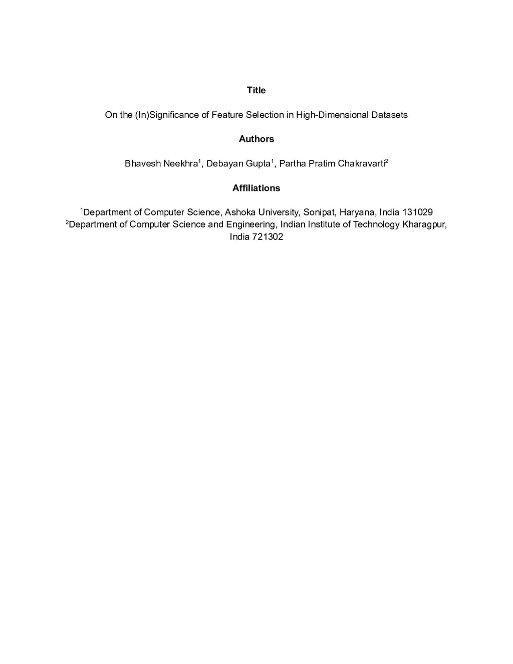On the (In)Significance of Feature Selection in High-Dimensional Datasets