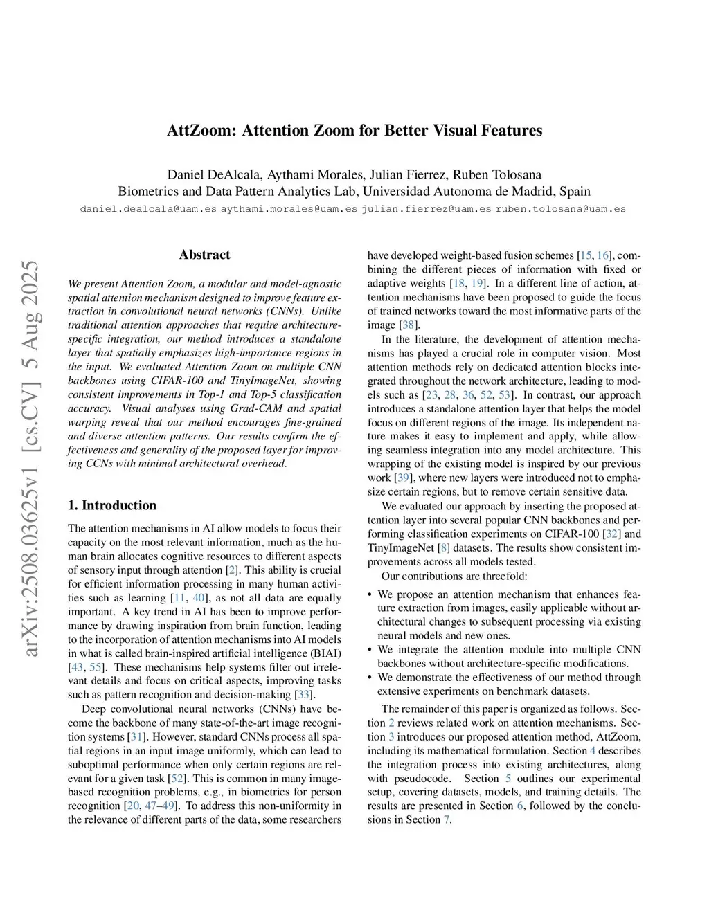 We present Attention Zoom, a modular and model-agnostic spatial attention mechanism designed to improve feature extraction in convolutional neural networks (CNNs). Unlike traditional attention approaches that require architecture-specific integration, our method introduces a standalone layer that spatially emphasizes high-importance regions in the input. We evaluated Attention Zoom on multiple CNN backbones using CIFAR-100 and TinyImageNet, showing consistent improvements in Top-1 and Top-5 classification accuracy. Visual analyses using Grad-CAM and spatial warping reveal that our method encourages fine-grained and diverse attention patterns. Our results confirm the effectiveness and generality of the proposed layer for improving CCNs with minimal architectural overhead.