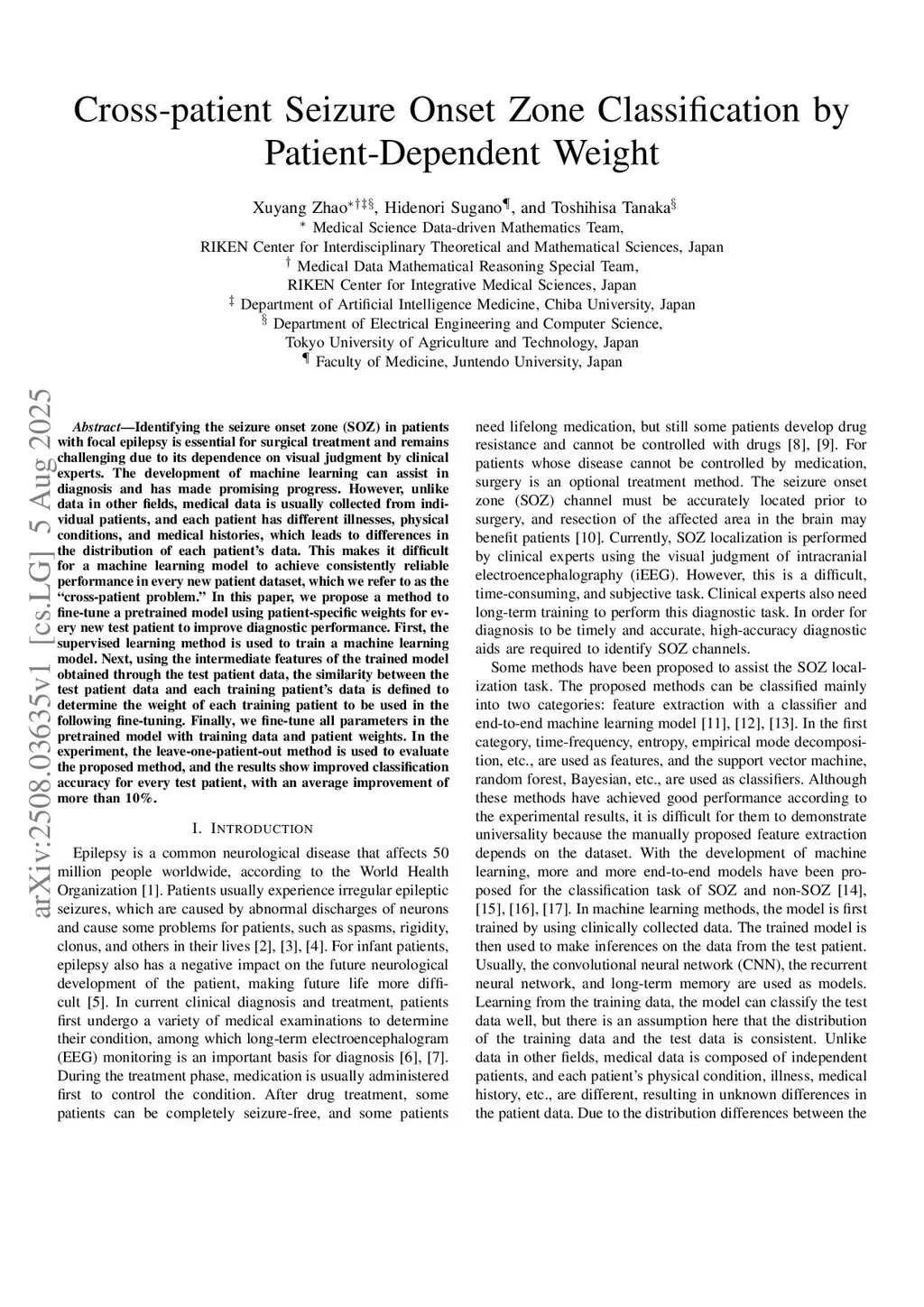 Cross-patient Seizure Onset Zone Classification by Patient-Dependent Weight