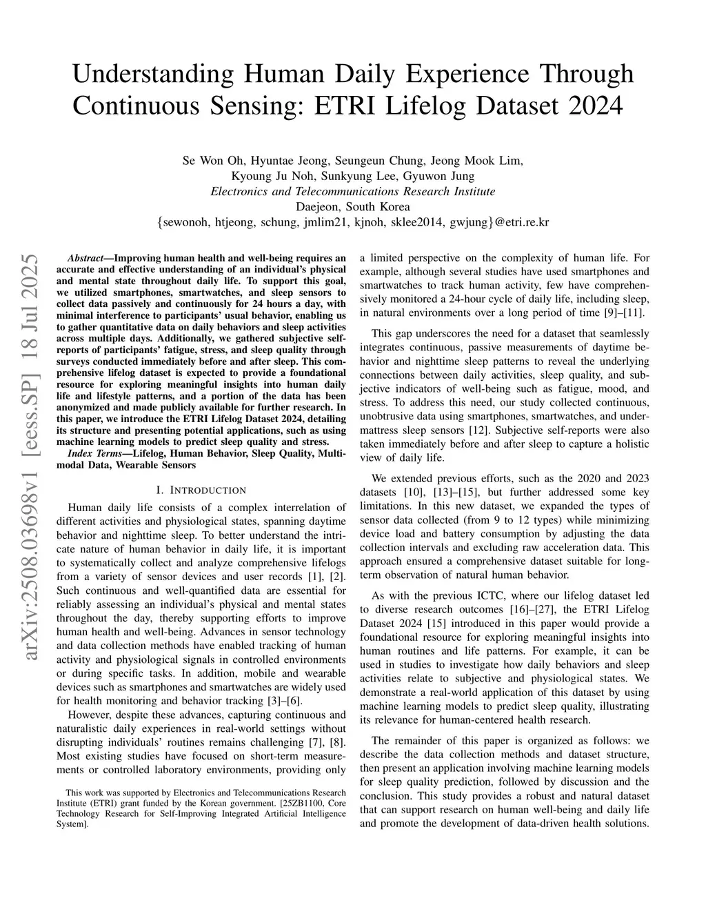 Understanding Human Daily Experience Through Continuous Sensing: ETRI Lifelog Dataset 2024
