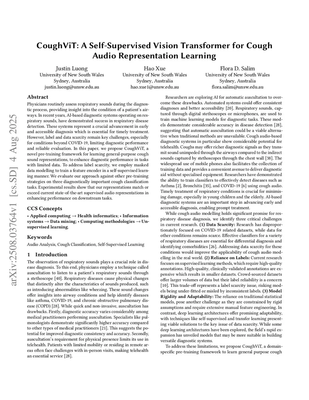 CoughViT: A Self-Supervised Vision Transformer for Cough Audio Representation Learning