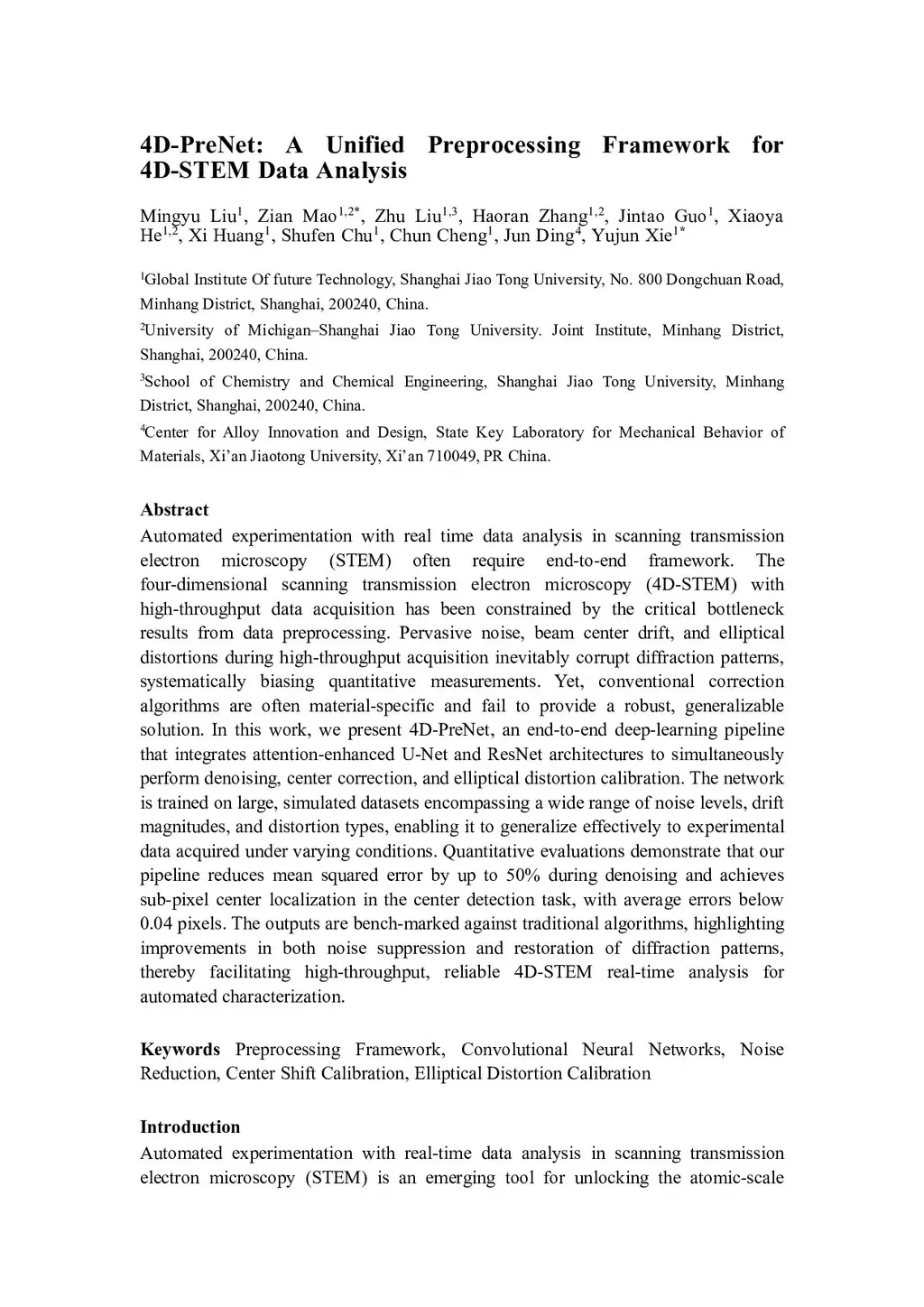 4D-PreNet: A Unified Preprocessing Framework for 4D-STEM Data Analysis