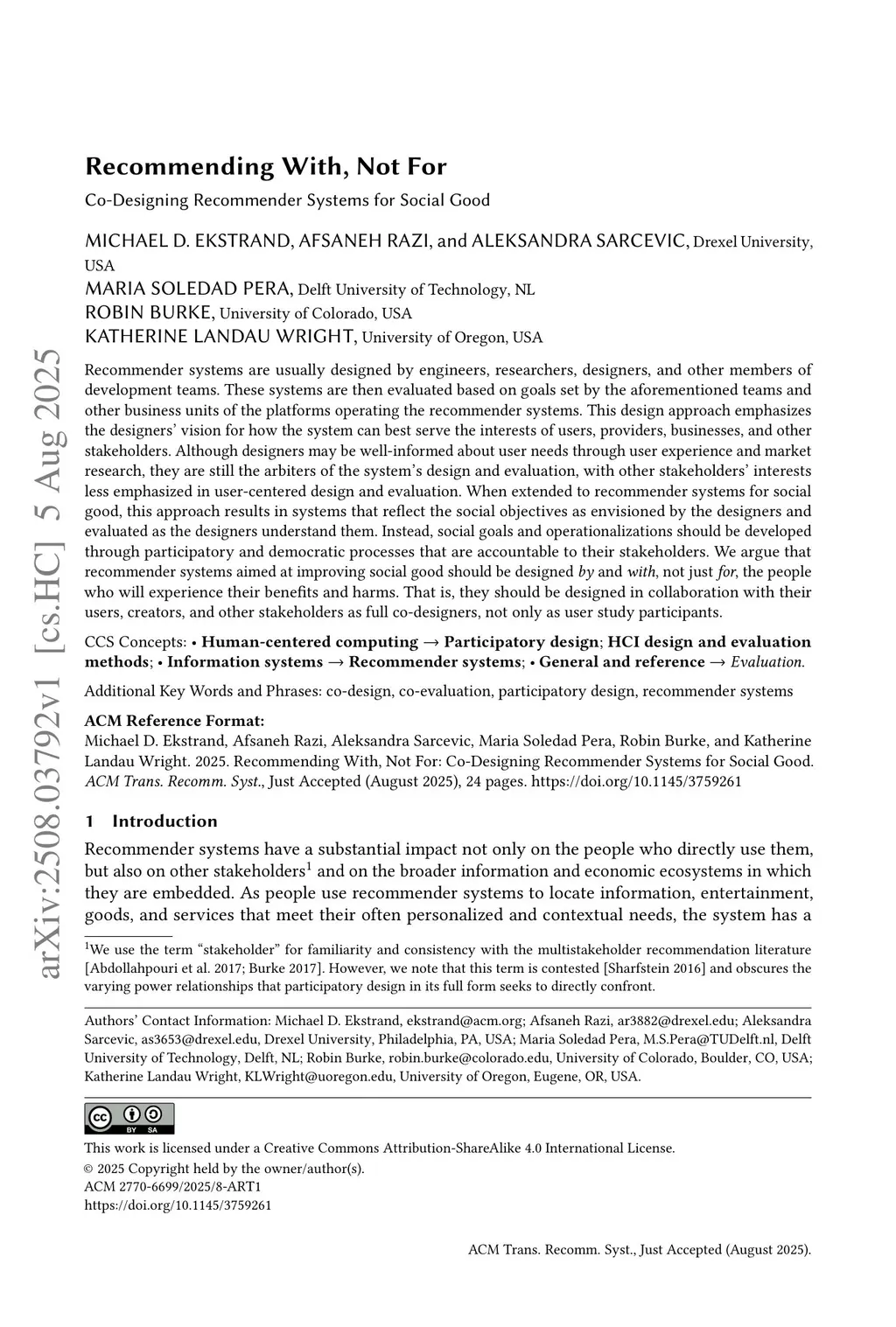 Recommending With, Not For: Co-Designing Recommender Systems for Social Good