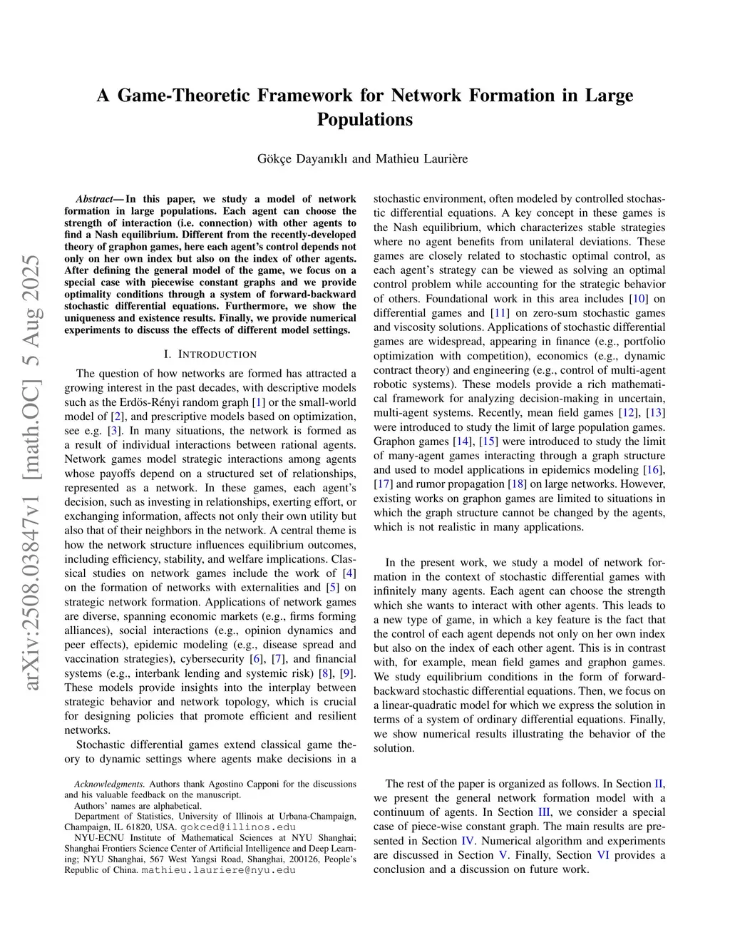In this paper, we study a model of network formation in large populations. Each agent can choose the strength of interaction (i.e. connection) with other agents to find a Nash equilibrium. Different from the recently-developed theory of graphon games, here each agent's control depends not only on her own index but also on the index of other agents. After defining the general model of the game, we focus on a special case with piecewise constant graphs and we provide optimality conditions through a system of forward-backward stochastic differential equations. Furthermore, we show the uniqueness and existence results. Finally, we provide numerical experiments to discuss the effects of different model settings.
