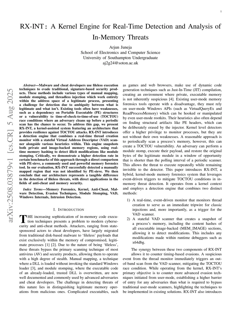 RX-INT: A Kernel Engine for Real-Time Detection and Analysis of In-Memory Threats