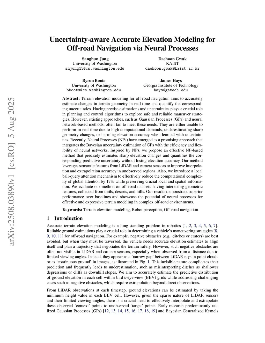 Uncertainty-aware Accurate Elevation Modeling for Off-road Navigation via Neural Processes