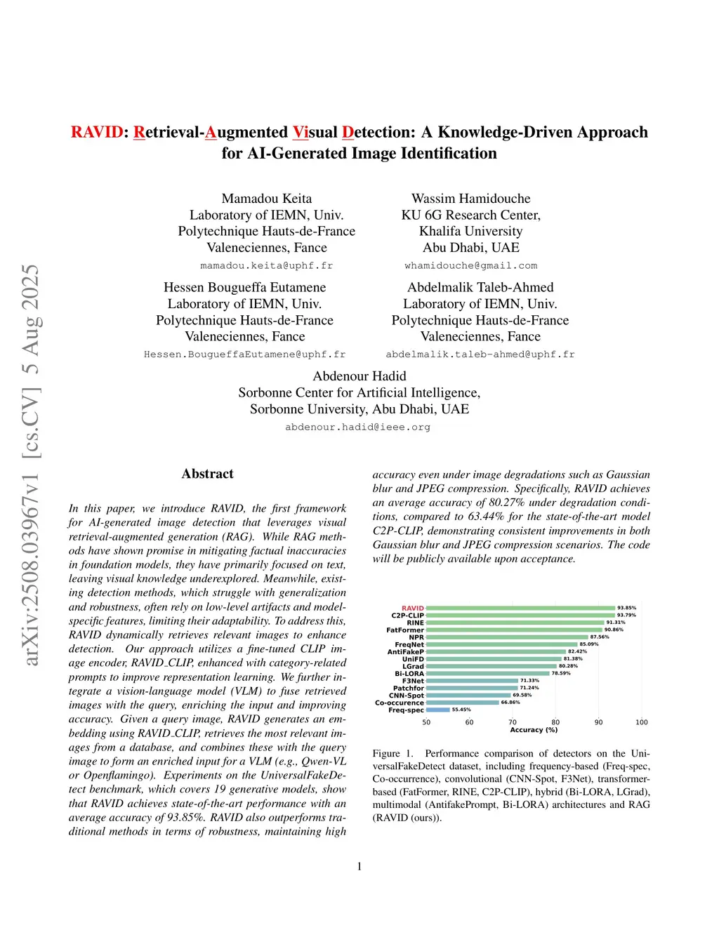 RAVID: Retrieval-Augmented Visual Detection: A Knowledge-Driven Approach for AI-Generated Image Identification