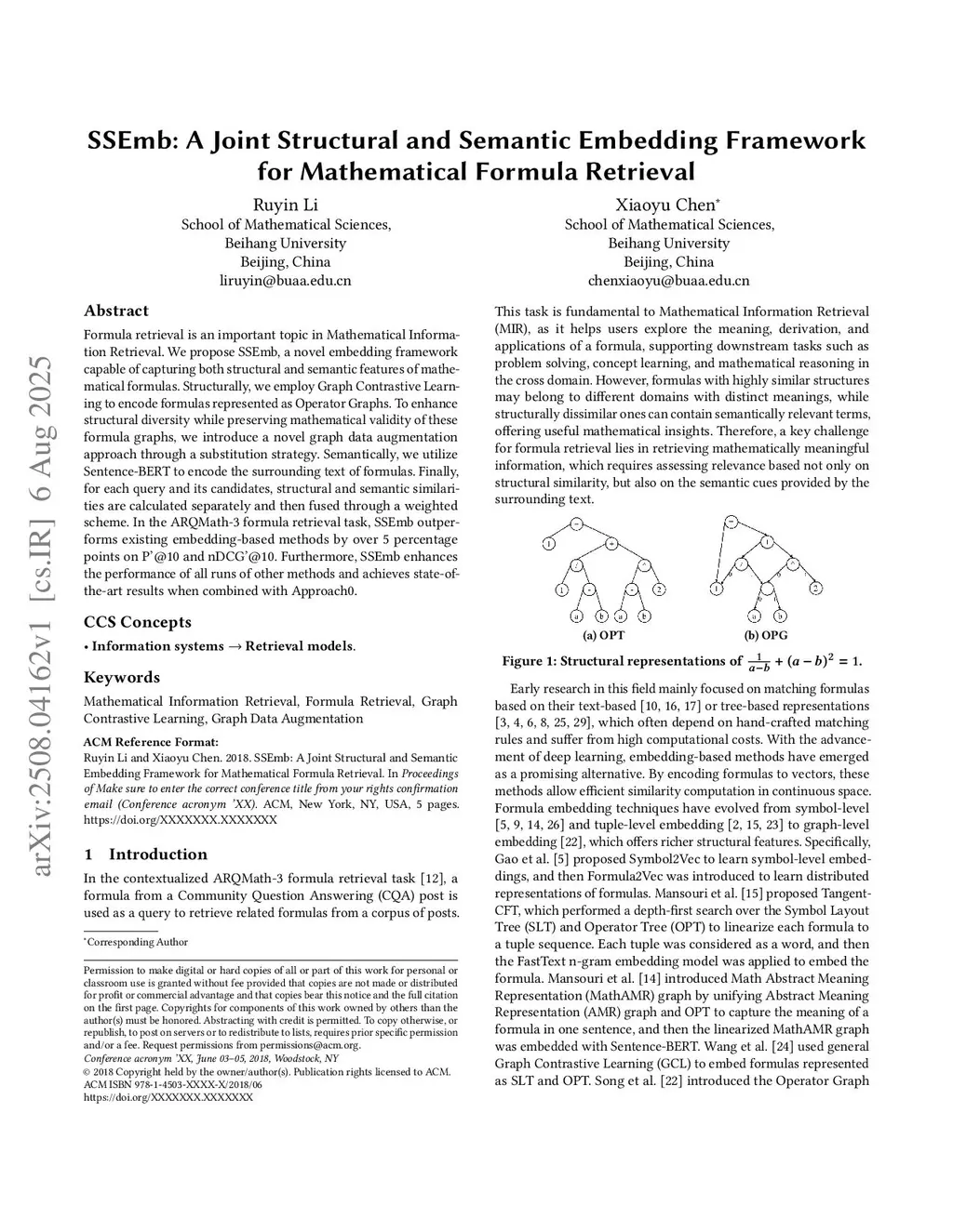 SSEmb: A Joint Structural and Semantic Embedding Framework for Mathematical Formula Retrieval