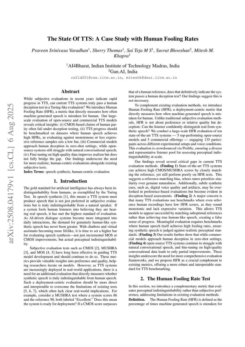 While subjective evaluations in recent years indicate rapid progress in TTS, can current TTS systems truly pass a human deception test in a Turing-like evaluation? We introduce Human Fooling Rate (HFR), a metric that directly measures how often machine-generated speech is mistaken for human. Our large-scale evaluation of open-source and commercial TTS models reveals critical insights: (i) CMOS-based claims of human parity often fail under deception testing, (ii) TTS progress should be benchmarked on datasets where human speech achieves high HFRs, as evaluating against monotonous or less expressive reference samples sets a low bar, (iii) Commercial models approach human deception in zero-shot settings, while open-source systems still struggle with natural conversational speech; (iv) Fine-tuning on high-quality data improves realism but does not fully bridge the gap. Our findings underscore the need for more realistic, human-centric evaluations alongside existing subjective tests.