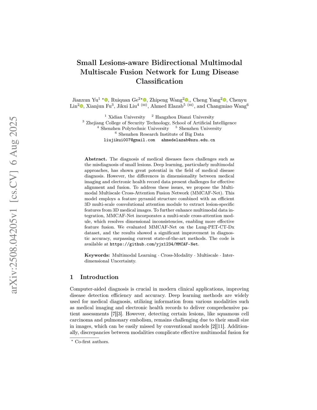 Small Lesions-aware Bidirectional Multimodal Multiscale Fusion Network for Lung Disease Classification