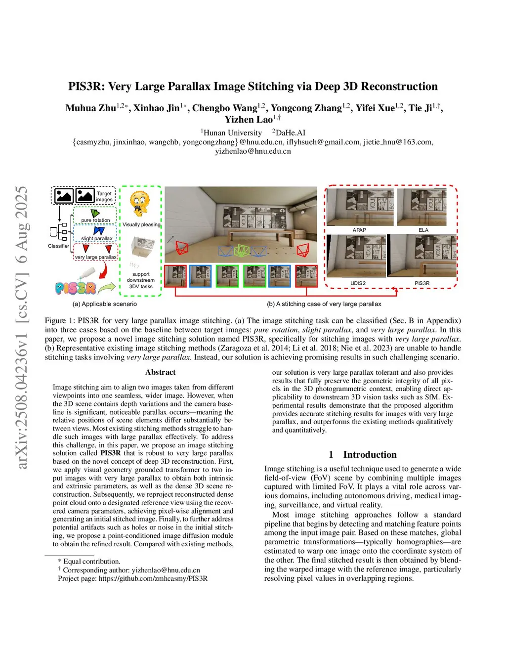 PIS3R: Very Large Parallax Image Stitching via Deep 3D Reconstruction