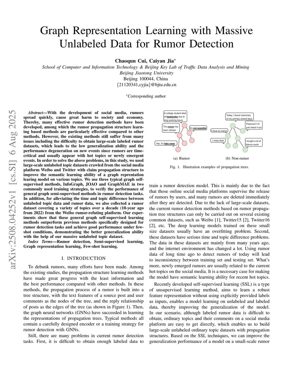Graph Representation Learning with Massive Unlabeled Data for Rumor Detection