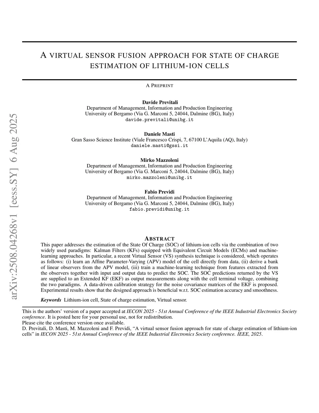 A virtual sensor fusion approach for state of charge estimation of lithium-ion cells