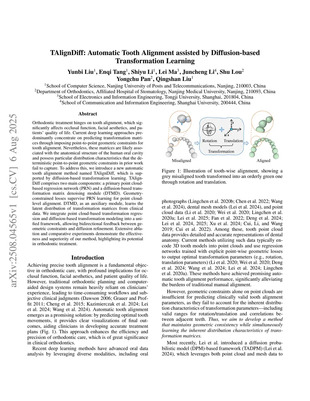 TAlignDiff: Automatic Tooth Alignment assisted by Diffusion-based Transformation Learning