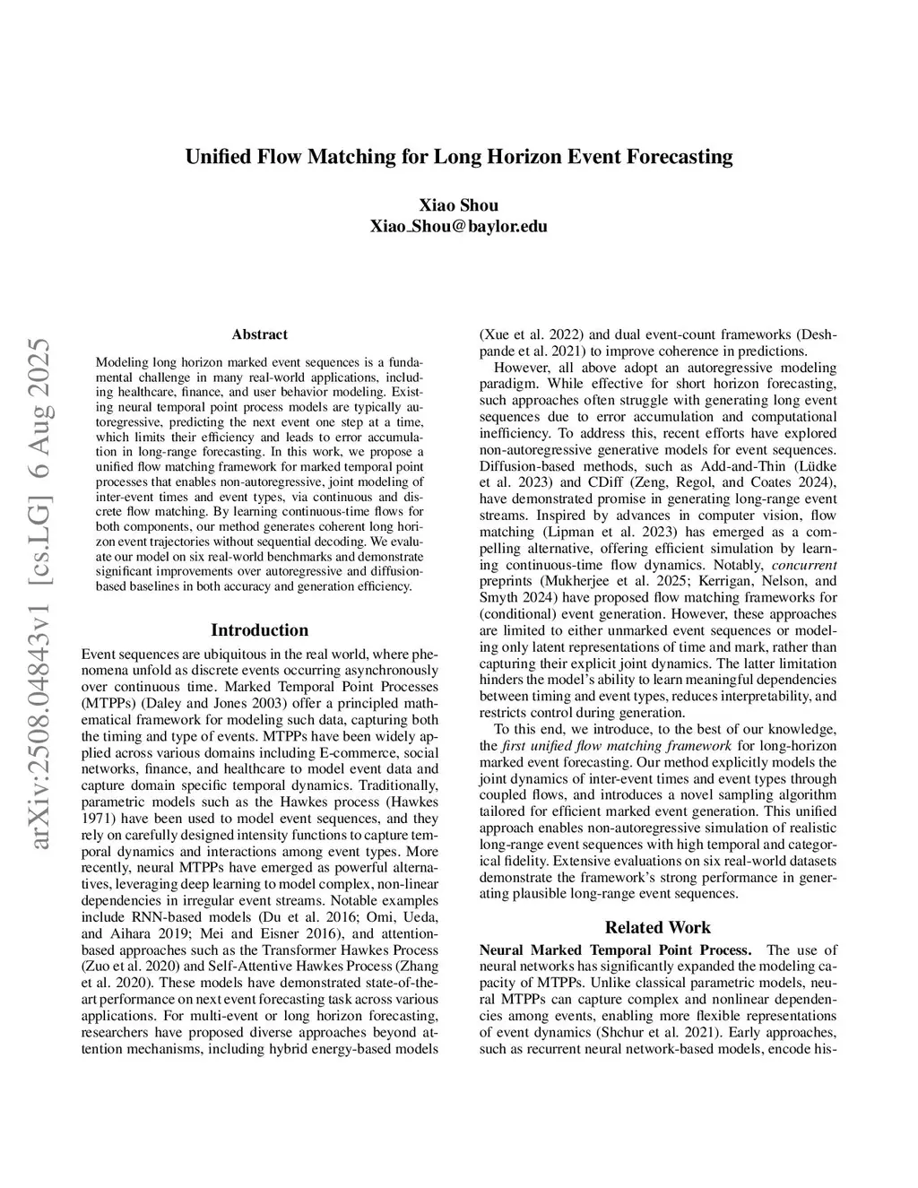 Unified Flow Matching for Long Horizon Event Forecasting