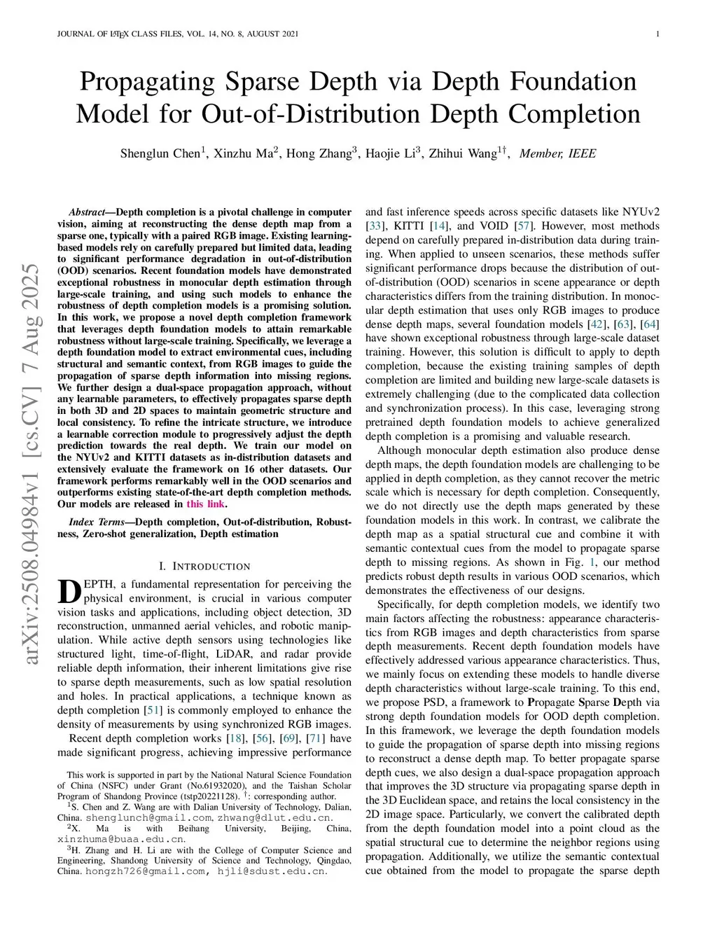 Propagating Sparse Depth via Depth Foundation Model for Out-of-Distribution Depth Completion