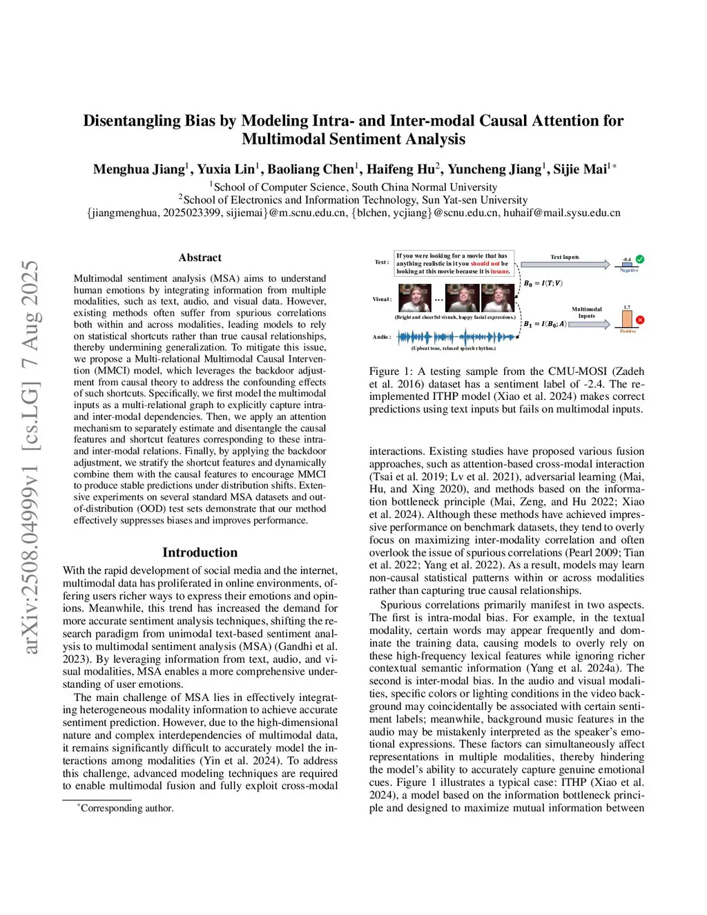 Disentangling Bias by Modeling Intra- and Inter-modal Causal Attention for Multimodal Sentiment Analysis
