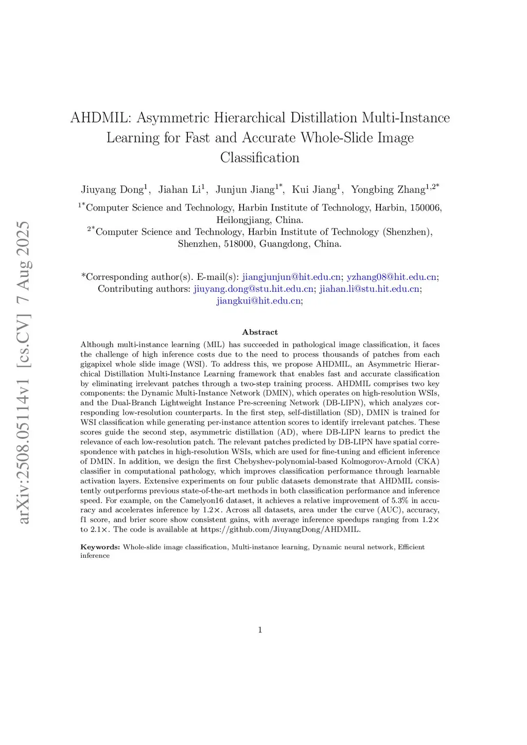 AHDMIL: Asymmetric Hierarchical Distillation Multi-Instance Learning for Fast and Accurate Whole-Slide Image Classification