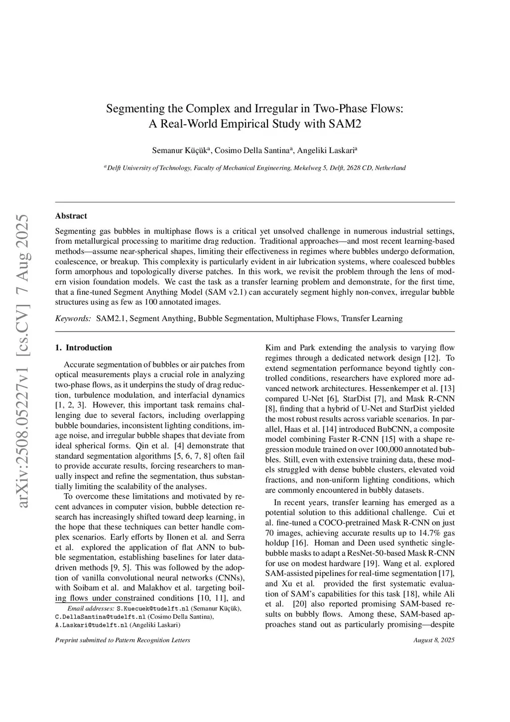 Segmenting gas bubbles in multiphase flows is a critical yet unsolved challenge in numerous industrial settings, from metallurgical processing to maritime drag reduction. Traditional approaches-and most recent learning-based methods-assume near-spherical shapes, limiting their effectiveness in regimes where bubbles undergo deformation, coalescence, or breakup. This complexity is particularly evident in air lubrication systems, where coalesced bubbles form amorphous and topologically diverse patches. In this work, we revisit the problem through the lens of modern vision foundation models. We cast the task as a transfer learning problem and demonstrate, for the first time, that a fine-tuned Segment Anything Model SAM v2.1 can accurately segment highly non-convex, irregular bubble structures using as few as 100 annotated images.