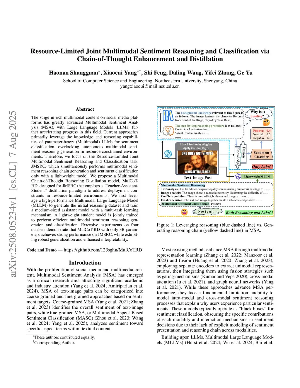 Resource-Limited Joint Multimodal Sentiment Reasoning and Classification via Chain-of-Thought Enhancement and Distillation
