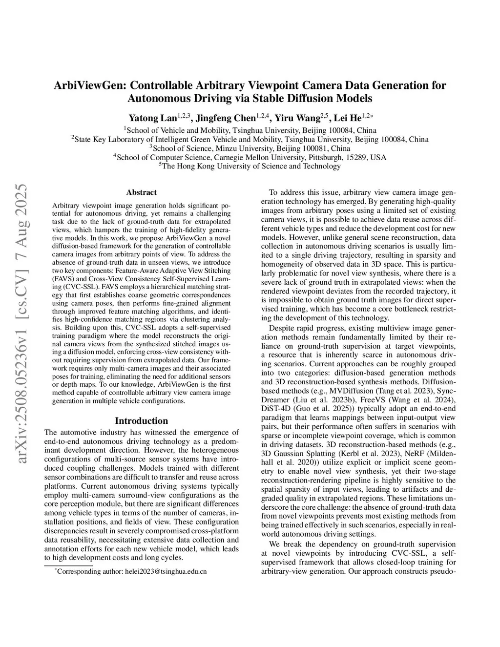 ArbiViewGen: Controllable Arbitrary Viewpoint Camera Data Generation for Autonomous Driving via Stable Diffusion Models