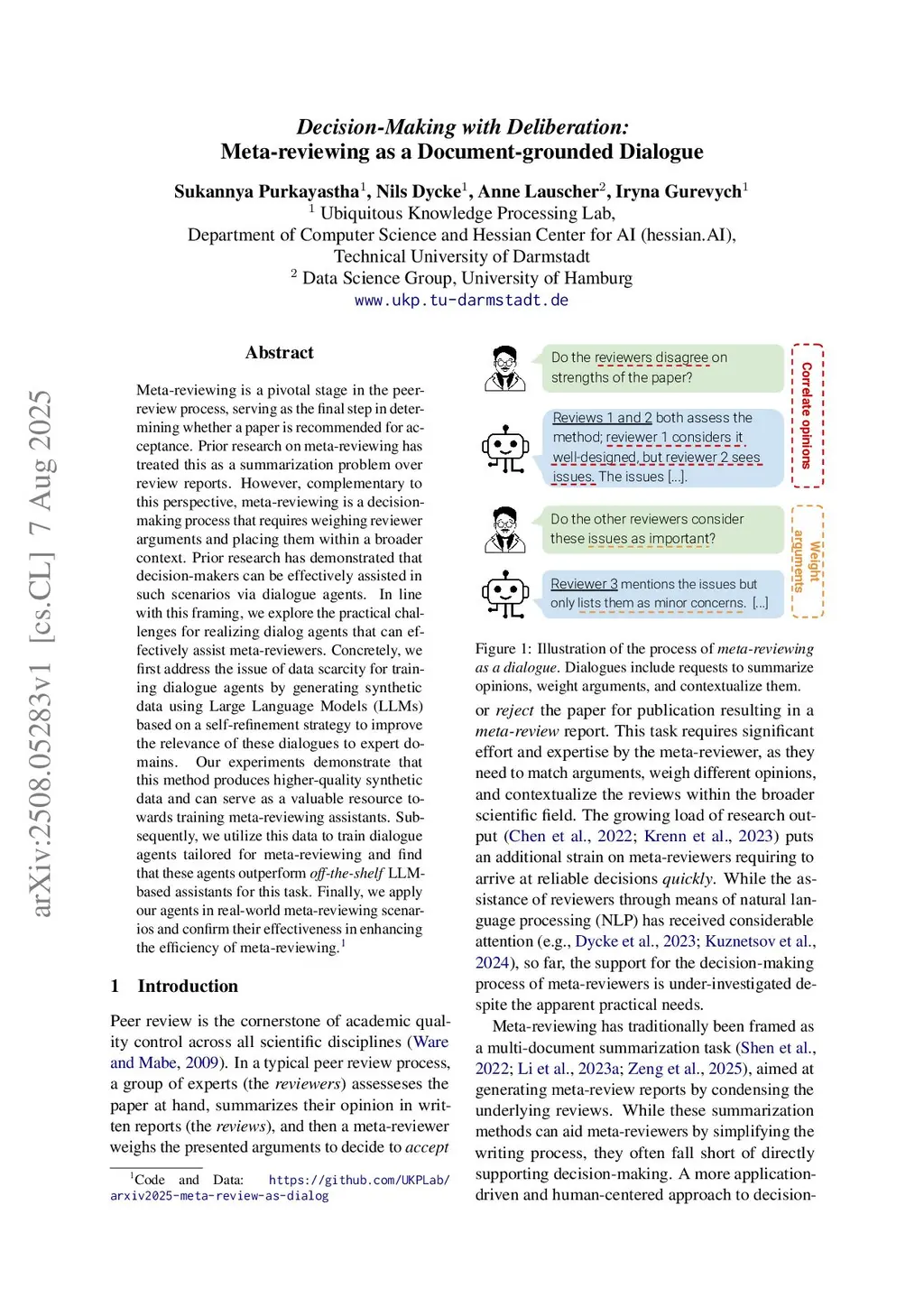Decision-Making with Deliberation: Meta-reviewing as a Document-grounded Dialogue