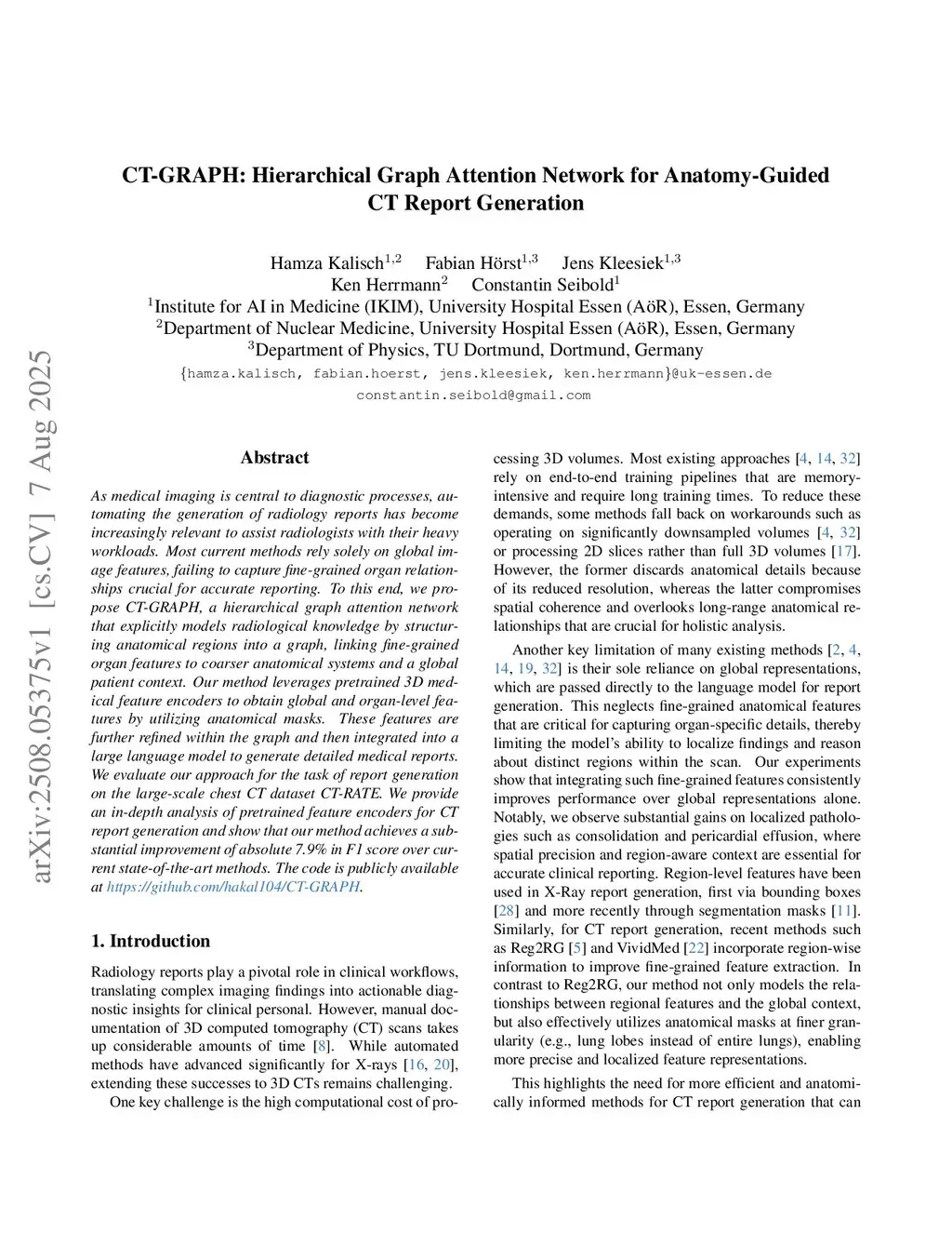 CT-GRAPH: Hierarchical Graph Attention Network for Anatomy-Guided CT Report Generation