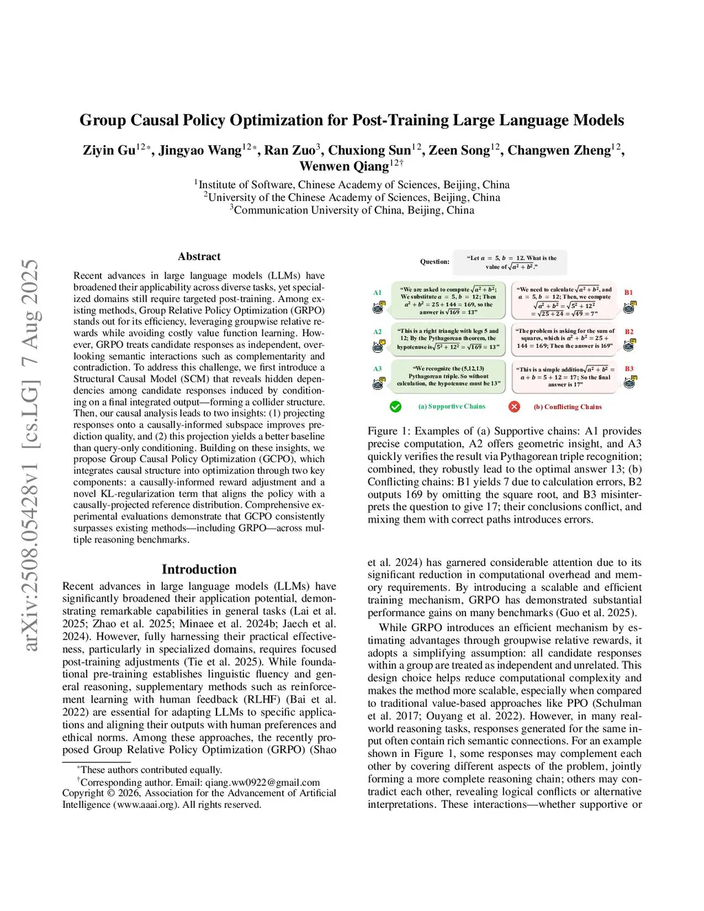Group Causal Policy Optimization for Post-Training Large Language Models