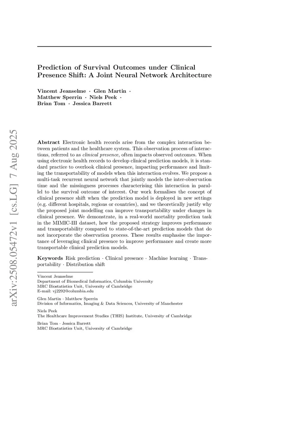 Prediction of Survival Outcomes under Clinical Presence Shift: A Joint Neural Network Architecture
