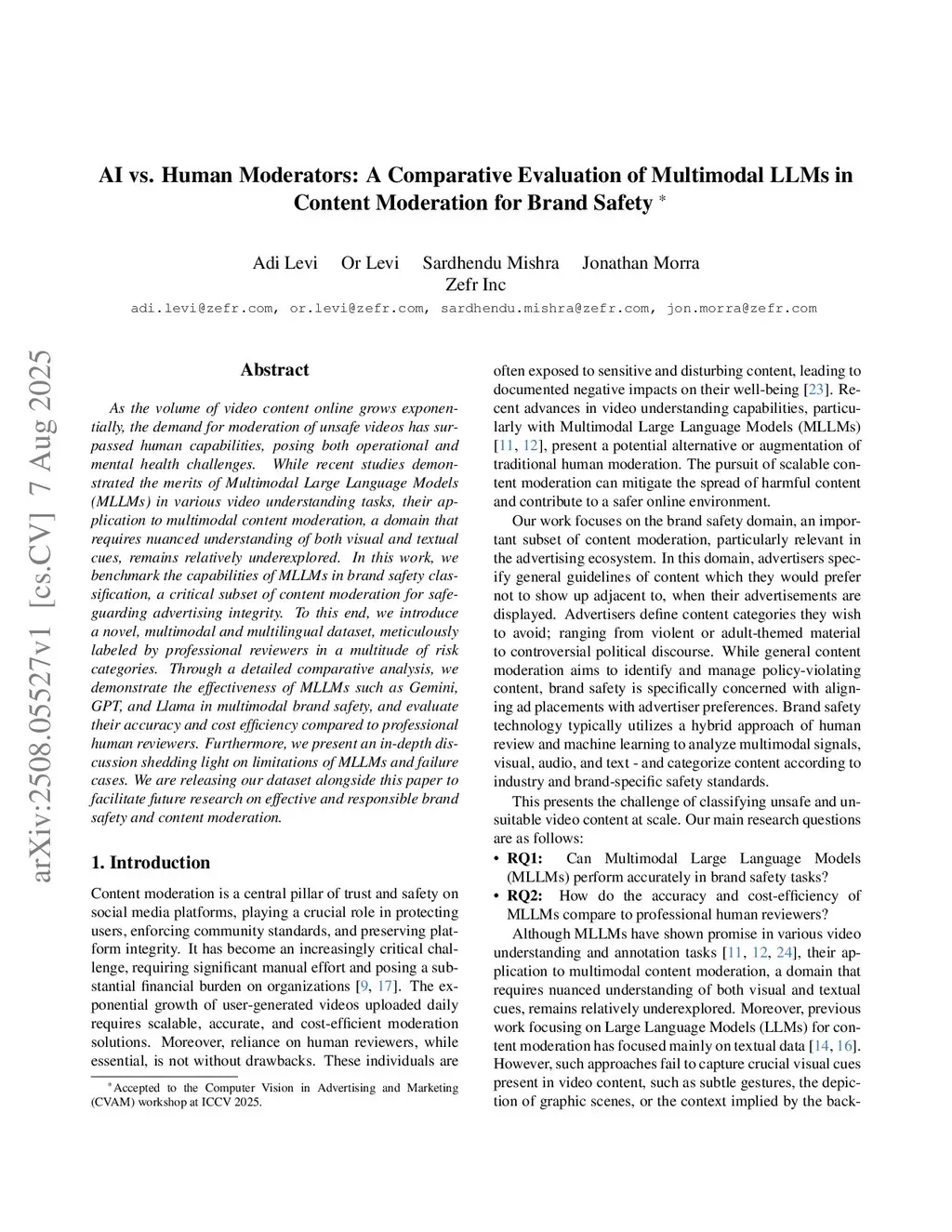 AI vs. Human Moderators: A Comparative Evaluation of Multimodal LLMs in Content Moderation for Brand Safety