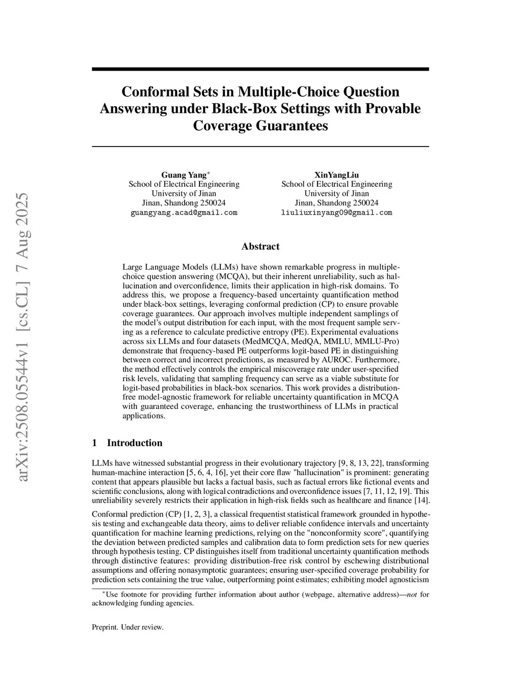 Conformal Sets in Multiple-Choice Question Answering under Black-Box Settings with Provable Coverage Guarantees