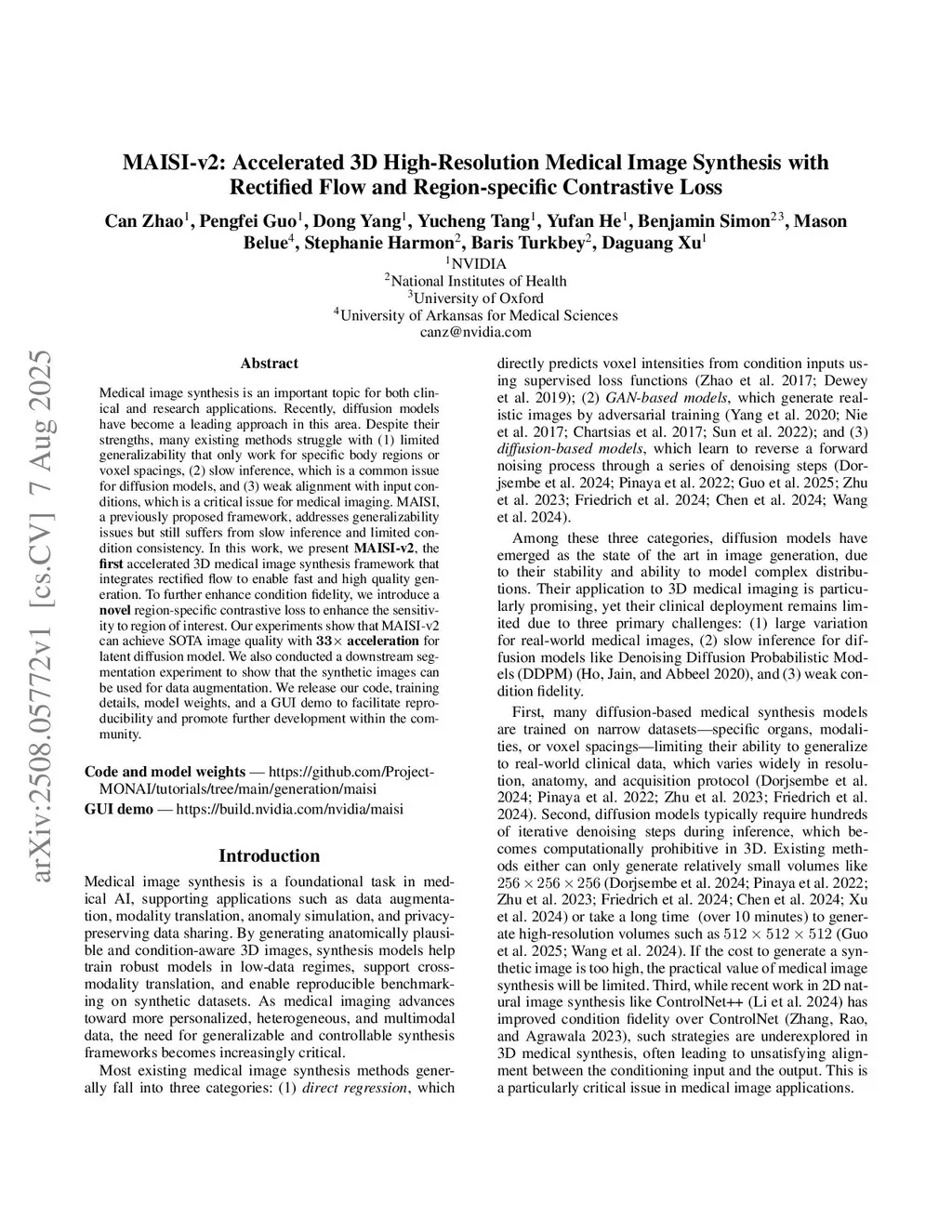 MAISI-v2: Accelerated 3D High-Resolution Medical Image Synthesis with Rectified Flow and Region-specific Contrastive Loss