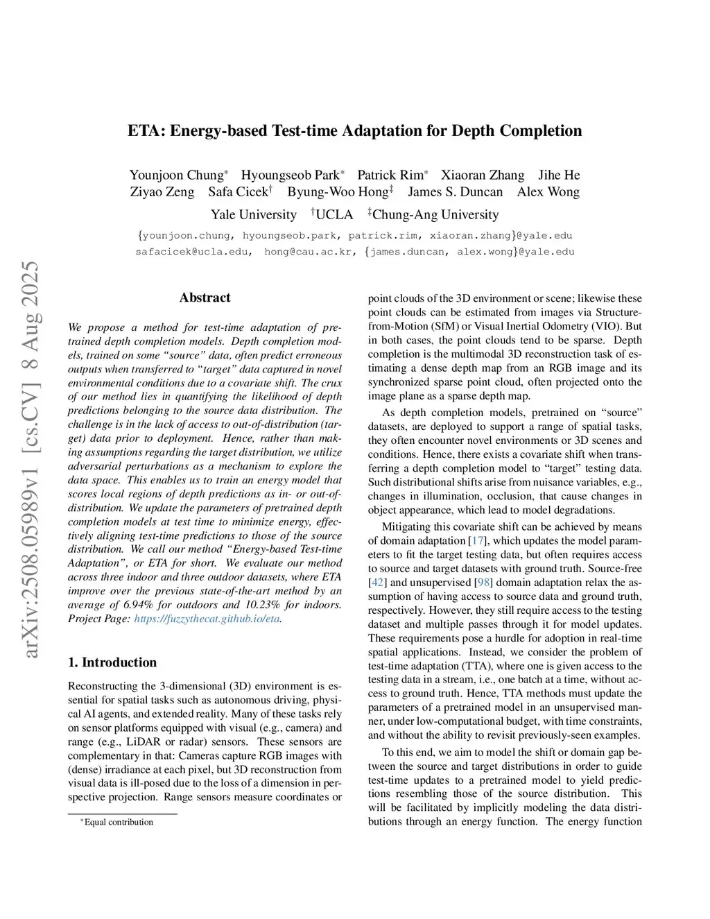 ETA: Energy-based Test-time Adaptation for Depth Completion