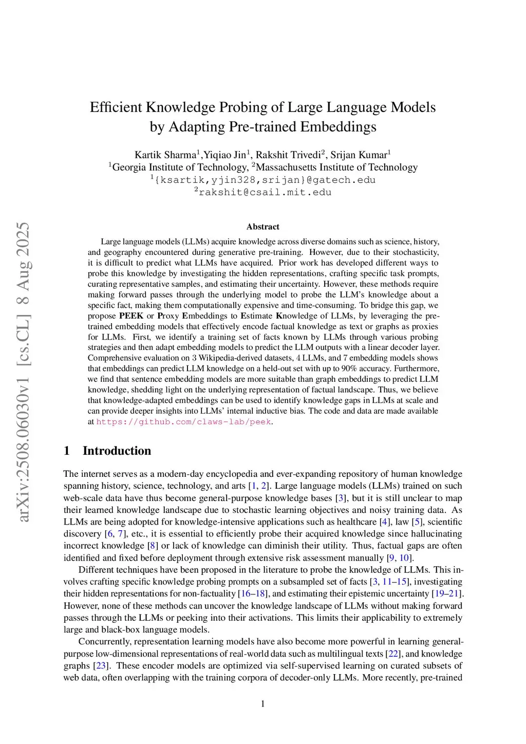 Efficient Knowledge Probing of Large Language Models by Adapting Pre-trained Embeddings