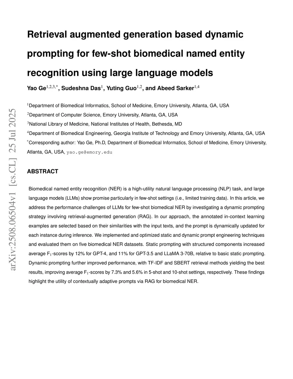 Retrieval augmented generation based dynamic prompting for few-shot biomedical named entity recognition using large language models